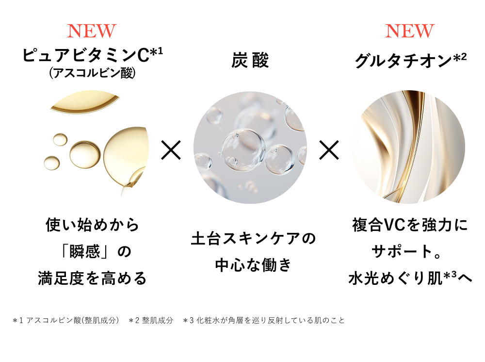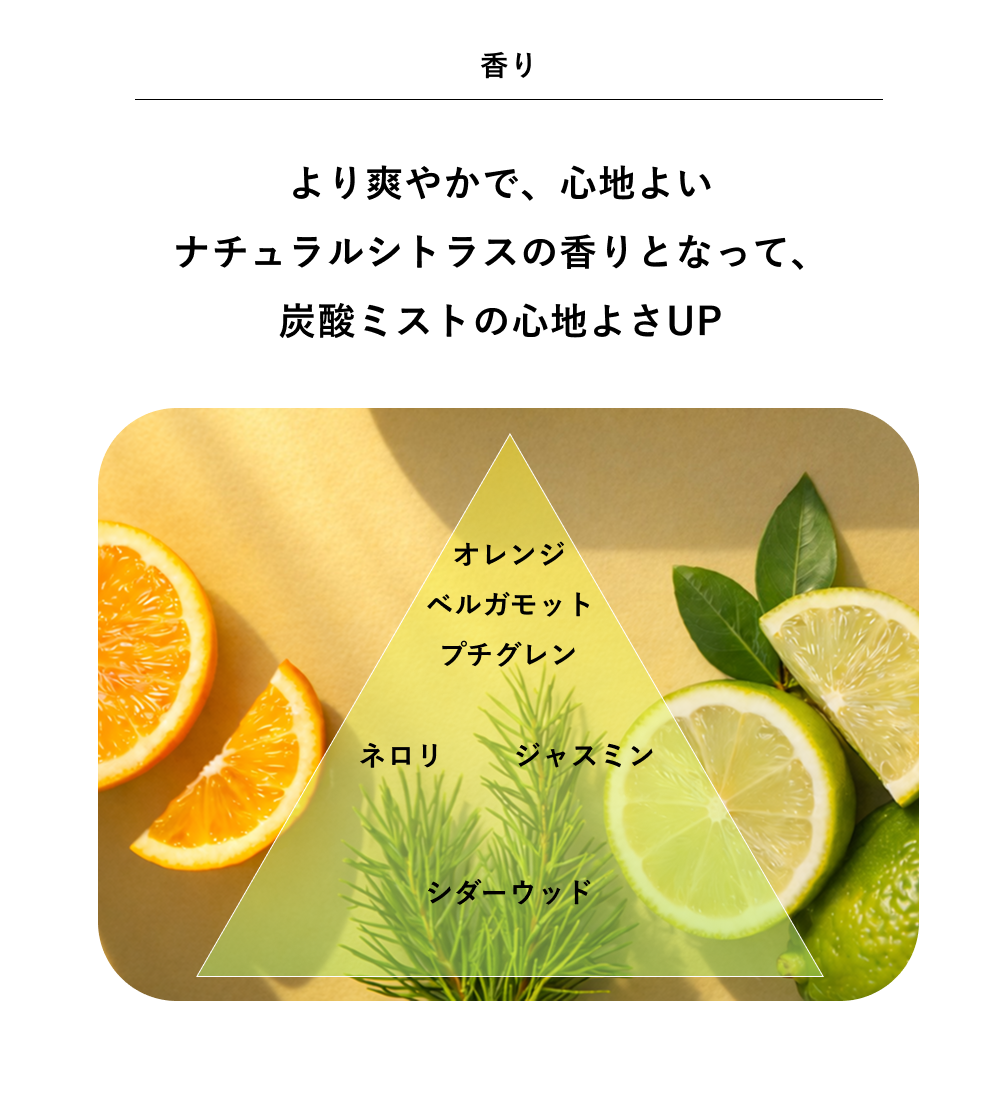 高濃度な炭酸ガスを含んだ専用化粧水を毛穴の約1/30*⁴のサイズの超微細ミストにすることで、まんべんなく、効率よく炭酸を肌に届けます*¹。